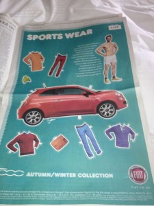 My enjoyment of the Style section in the Sunday Times was somewhat sullied by this double page Fiat 500 advert: Is this really how Fiat think women want to be targeted? By using the pre-pubescent past time of cutting out paper clothes and putting them over a cartoon character as the primary feature. This is […]